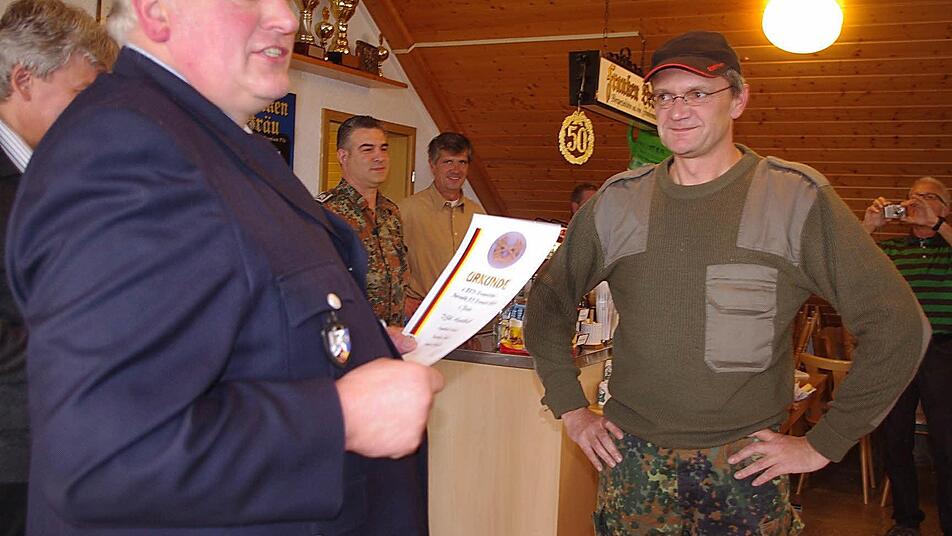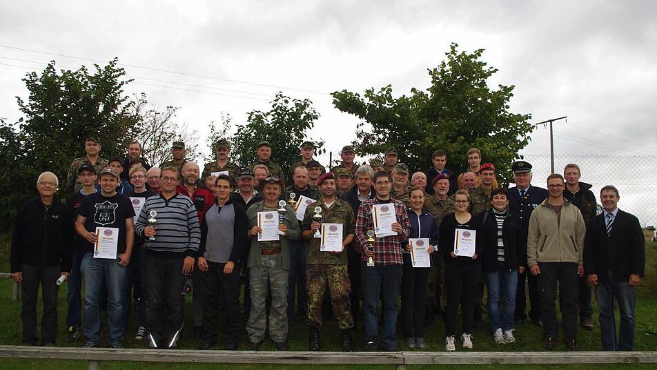 Die ursprünglich für Ende Juli angesetzte Veranstaltung war wegen der damaligen Hitze auf September verschoben worden - eine richtige Entscheidung, wie sich im Nachhinein herausstellte. So machten sich bei idealem Wetter die Teams vom Sportgelände des SSV Lahm/Hesselbach in Hesselbach auf den 8,7 Kilometer langen Fußmarsch. An sechs Stationen wurden verschiedene militärische Kenntnisse und Fähigkeiten geprüft, die jedoch dem Leistungsvermögen der Teilnehmer angepasst waren. Im praktischen Teil standen neben dem Handgranaten-Zielwurf auch das Schätzen von Entfernungen und das Schießen mit Handwaffen auf dem Programm.