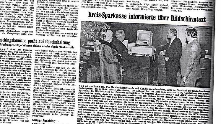 Am selben Tag berichtete die Zeitung auch über die Einführung des Bildschirmtextes (BTX) in der Kreis-Sparkasse Ludwigsstadt.
