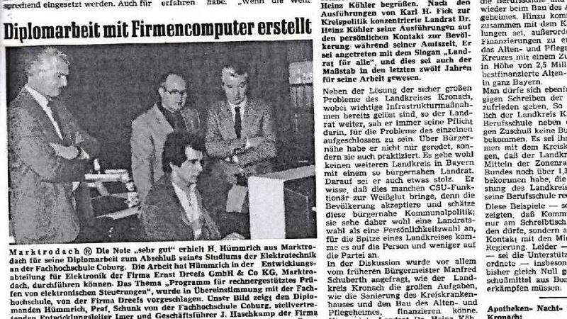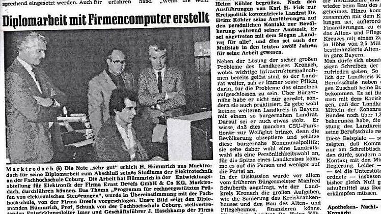 Damals als Sensation gefeiert, heute ganz alltäglich: Am Donnerstag, 1. März 1984, berichtete der "Fränkische Tag" über einen Absolventen der Fachhochschule Coburg, der seine Diplomarbeit mit dem Firmencomputer erstellt hatte.