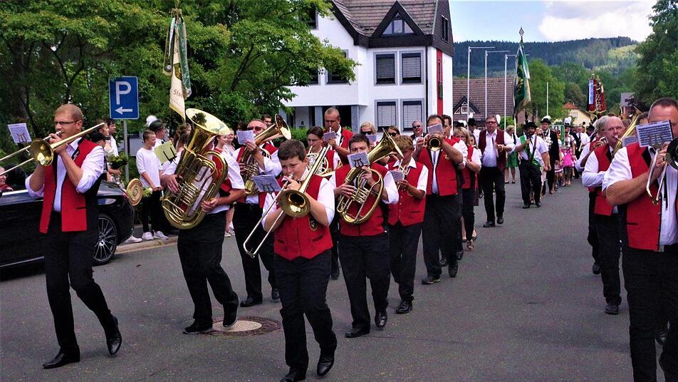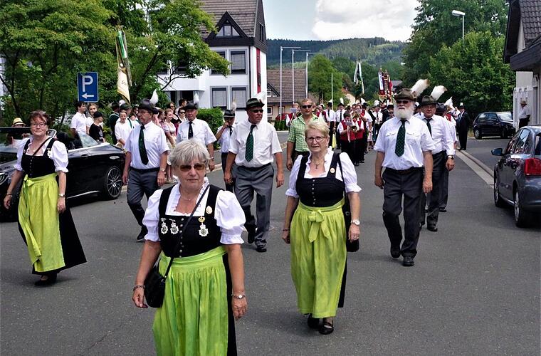 Für zünftige Marschmusik sorgten der Musikverein Ebersdorf, die Haache Volksmusikanten sowie die Bergmannskapelle Stockheim. Mit Böllerschüssen der Mitwitzer Schützen wurde der Auszug akustisch begleitet. Eine starke Gruppe bildete der Patenverein aus Burggrub. Weiter waren die Schützen aus Kronach, Ludwigsstadt, Steinbach und Wallenfels präsent. Ebenfalls marschierten Knappenverein, Feuerwehr Stockheim, TSV Stockheim, FC Stockheim, Katholischer Frauenbund, ACS Bike-Runners sowie die Budokids-Caerobics mit. Den Zugschluss bildeten die Stockheimer Schützen mit ihrem König Lukas Eisenbeiß sowie Jungschützenkönigin Laura Wachter.