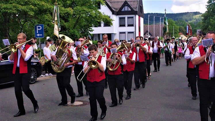 Angeführt von den örtlichen Honoratioren mit Zweitem Bürgermeister Siegfried Weißerth und den Ratsmitgliedern mit dem Schützenhortvorstand um Vorsitzenden Frank Oberkofler bewegten sich die Schützenvereine mit den örtlichen Vereinen und Verbänden beim Schützenauszug durch