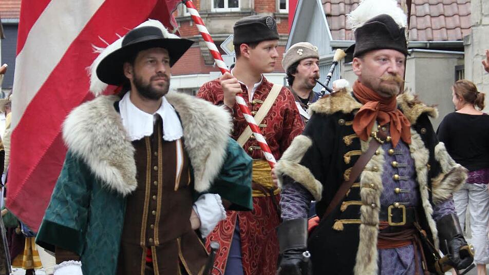 Zum Auftakt des Stadtspektakels durchquerten am Freitagabend historische Gruppen die Kronacher Innenstadt. Viele Schaulustige verfolgten den Festzug.