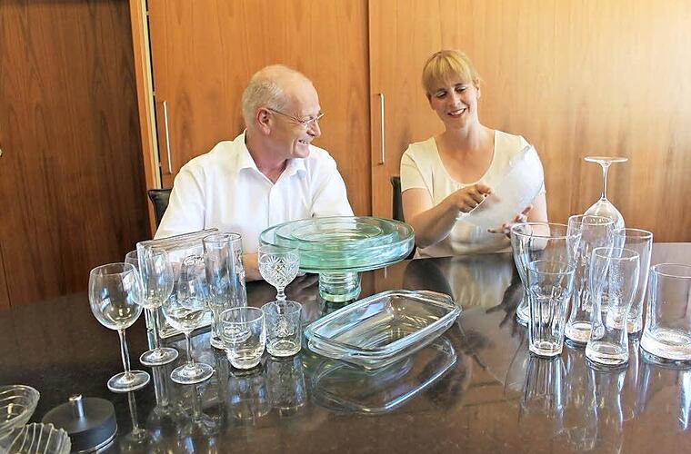 Glas in vielen Formen sticht im Besprechungszimmer einem Besucher ins Auge. Die für die Herstellung dieser Glasgegenstände und -gefäße benötigten Maschinen und Produktionsanlagen werden bei Waltec Maschinen GmbH entwickelt, konstruiert, gebaut und weltweit an die Glasindustrie verkauft.
