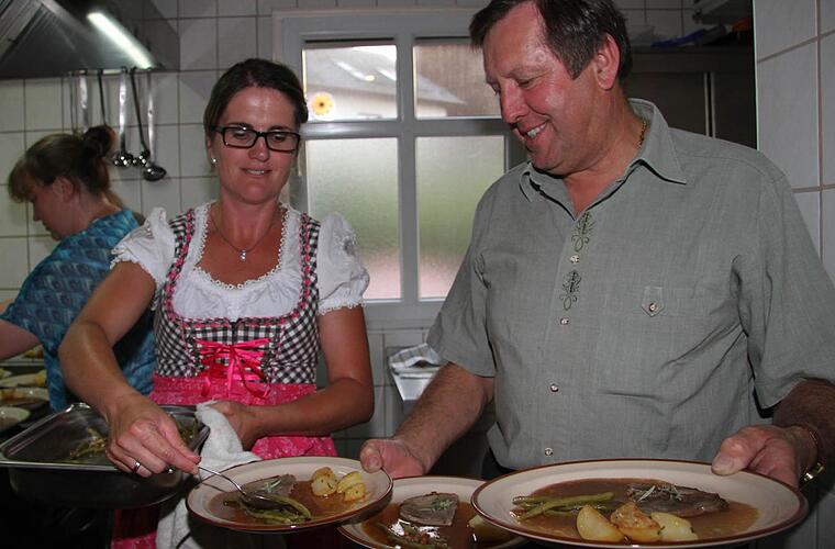 Einblicke Beim Hauptgericht - Lammbraten mit Thymian gewürzt, mit Kartoffeln und Speckbohnen - gewährte der Inhaber des Schäferstübchens, Alfred Hofmann, einen Einblick in sein Business. Er schlachtet jedes Jahr etwa 35 Tiere. Und seine Frau behält den Überblick und macht die Küche; seine Schwiegertochter Melanie Hofmann hilft ebenfalls mit. Denn schließlich gehören zur Schäferstub'n Häusles noch Ferienwohnungen dazu.
