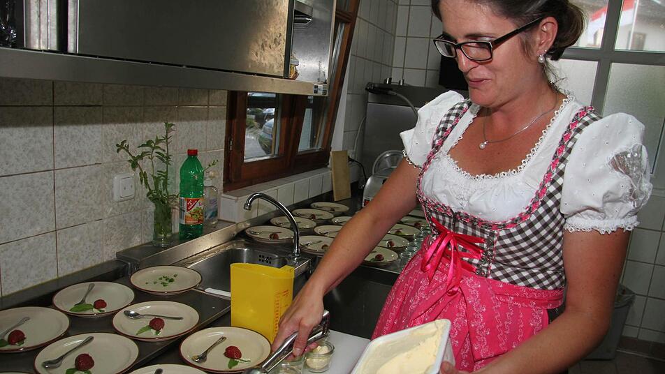 Bei dem Kronacher Treffen zauberte Melanie Hofmann eine kreative Nachspeise aus selbst gemachtem Eis und regionalen Erdbeeren mit Eierlikör aus Eigenherstellung. Und auch Käsesommelier Christine Weigel aus Rohr gewährte Einblicke in ihre Handwerkskunst. Sie bot Butterkäse, Frischkäse, Brie aus Oberfranken, Drossenfelder Schnittkäse und Räucherkäse zum Probieren an. Seit 15 Jahren produziert Christine Weigel Käse. Den Schnittkäse pflegt sie drei Mal pro Woche per Hand. "Wir verkäsen 40 000 Liter Kuhmilch im Jahr", erklärte sie. Evelyn Heil berichtete zudem vom landwirtschaftlichen Betrieb. Sie betreibt eine Salzgrotte und ein Heil-Lädchen.