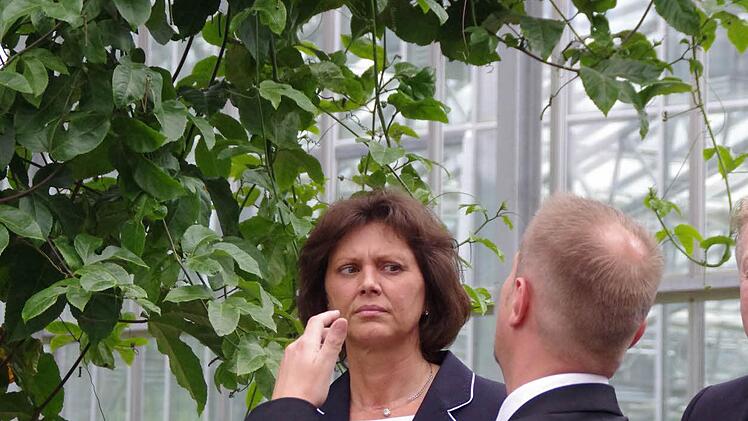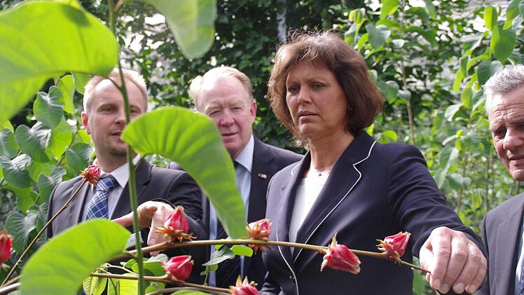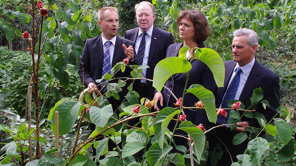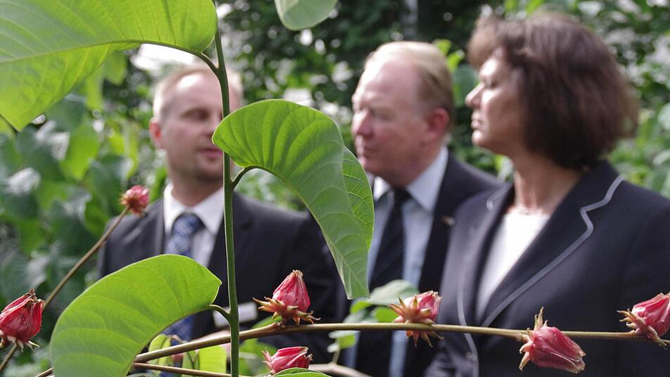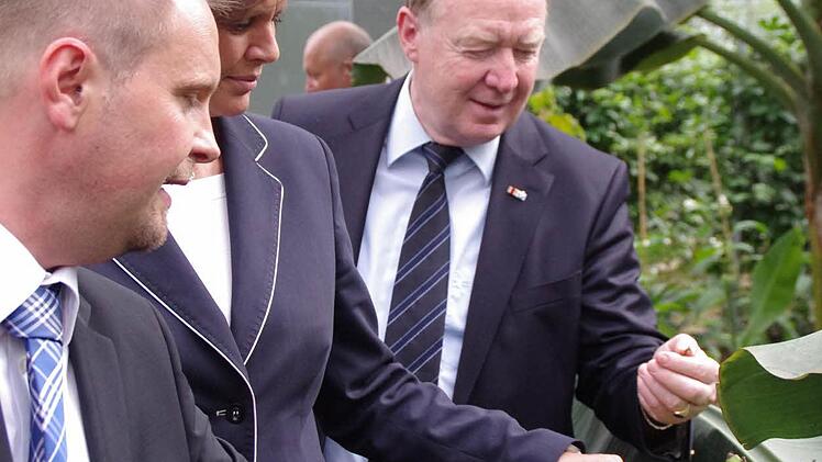 Neugierig nimmt Ilse Aigner die Blüten des Hibiskus unter die Lupe. Nicht weit davon entfernt wachsen Chilis und Bananen. Auch tropische Fische gibt es hier. Als die bayerische Wirtschaftsministerin wenige Stunden zuvor aus Berlin aufgebrochen war, hatte sie vermutlich nicht damit gerechnet, bald im nördlichsten Oberfranken unter Palmen hindurch spazieren zu können. Doch das Tropenhaus "Klein-Eden" macht es möglich.
