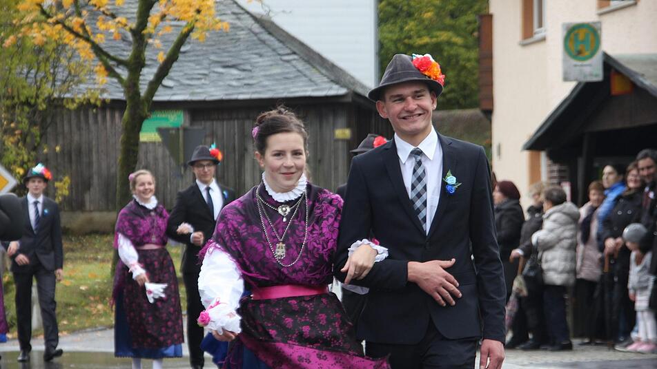 Neun Zechpaare und zwei Kellner begeisterten am Sonntagmittag mit ihrem Trachtenaufzug und dem Plantanz sowohl die Besucher als auch die Einheimischen. Landrat Klaus Löffler lobte die jungen Leute für ihr Engagement zur Aufrechterhaltung von Tradition und Brauchtum. Und: "Ich freue mich, dass ich in meiner Heimat an der Kirchweih teilnehmen kann!"