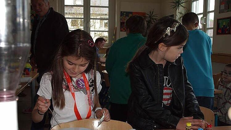 Die 1. und 2. Klasse richteten eine Lego- und Sinneswerkstatt ein. Die Schüler der 3. Klasse erfreuten die Gäste mit drei englischen Kreistänzen. In ihrer "Forscherwerkstatt" bot die 4. Klasse Sehenswertes an. Den Schwerpunkt bildeten Geometrie-Aufgaben aus "Sinus an Grundschulen", einem Fortbildungsprogramm zur Weiterentwicklung des mathematisch-naturwissenschaftlichen Unterrichts, an dem die Grundschule Steinbach am Wald seit einigen Jahren teilnimmt.