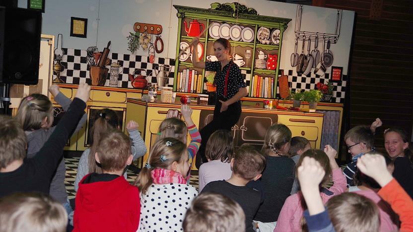 Während Tina Turbo verzweifelt versucht, die immer mehr eskalierende Kochshow zu retten,lernten die Jungen und Mädchen "ganz nebenbei" vieles über gesunde Ernährung. Wer hätte beispielsweise gedacht, dass in einem Glas Nutella 83,5 (!) Würfelzucker enthalten sind? Ein ungläubiges "Was?" ging durch die junge Zuschauerriege. Grandios dargestellt wurde Tina Turbo von Katharina Krause.