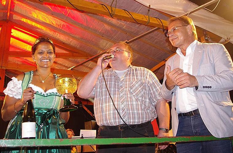So war im Jahr 2001 - nach einer davor 50 Jahre währenden "wilden Weinpartnerschaft" - eine offizielle Partnerschaft besiegelt worden. Auf die Fahrt ins schöne Rhodt freut sich die neue Weinkönigin am allermeisten. "Ich war noch niemals dort", verrät die 28-Jährige, die in Kronach als Majestät ohne eigentliches Herrschaftsgebiet zu königlichen Würden kommt. Dass sie sich als Kandidatin zur Verfügung stellen würde, hatte sie sich schon vorher überlegt - im Gegensatz zum vergangenen Jahr, als Verwandte und Bekannte sie schon ein wenig dazu "gedrängt" hatten. Die bisherige erste Weinprinzessin vertrat beim diesjährigen Weinfest auch die bisherige Majestät Daniela Krüger, die nicht anwesend sein konnte.