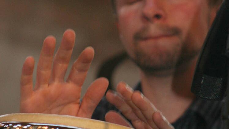 Drumer Stephan Emig nutzte nicht nur die Klangmöglichkeiten seines Schlagzeuges aus, sondern zeigte sich immer auf der Suche nach neuen Klangelementen. Und so durften natürlich auch eine ganz eigen bearbeitete Suite über ein taiwanesisches Revolutionslied und das "Ila famosa" nicht fehlen.