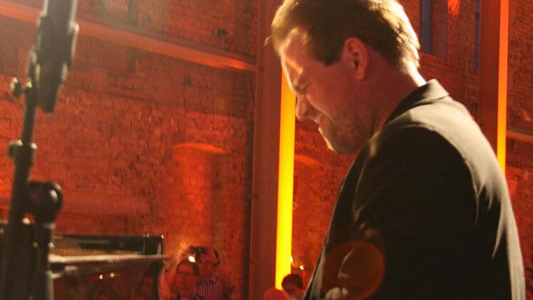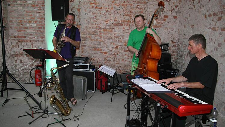 Und je später der Abend, desto passender wurde die Kulisse. Denn die Kühlenzpassage war in farbiges Licht getaucht. Und die Sonne spielte und zauberte tolle Reflexe an die rohen Ziegelwände. Als "Stars zwischen den Top-Acts" wurde die heimische Band "Schmoelz" verpflichtet, aber nicht in Vollbesetzung, sondern "nur" Bernd Kleilein (Bass), Günter Prokoph (Saxophon) und Hans-Dieter Klinger (Piano) gaben sich die Ehre - einfach, weil ein Trio für Zwischendurch angenehmer war. Schon vor dem Konzert sorgte es mit seiner Mischung aus Jazz, Soul und Standards für derart angenehme Stimmung, dass die Zuhörer gar nicht genug bekommen konnten und in lockerer Atmosphäre gerne fachsimpelten.