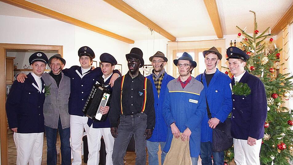 Es ist 10 Uhr am Samstag, als ein recht seltsam anmutender Zug die Hauptstraße in Neufang entlang zieht. Schlotfeger Kai Oliver ist dabei, Scherenschleifer Jonas, Musikant Tobias, Schnapsträger Manuel und Sackträger Tobias sowie Kürassier Stefan, der den Geldbeutel mit sich führt. Dann gibt es noch die Jäger Patrick und Michael sowie die Tänzer Andreas, Lukas und Maximilian.