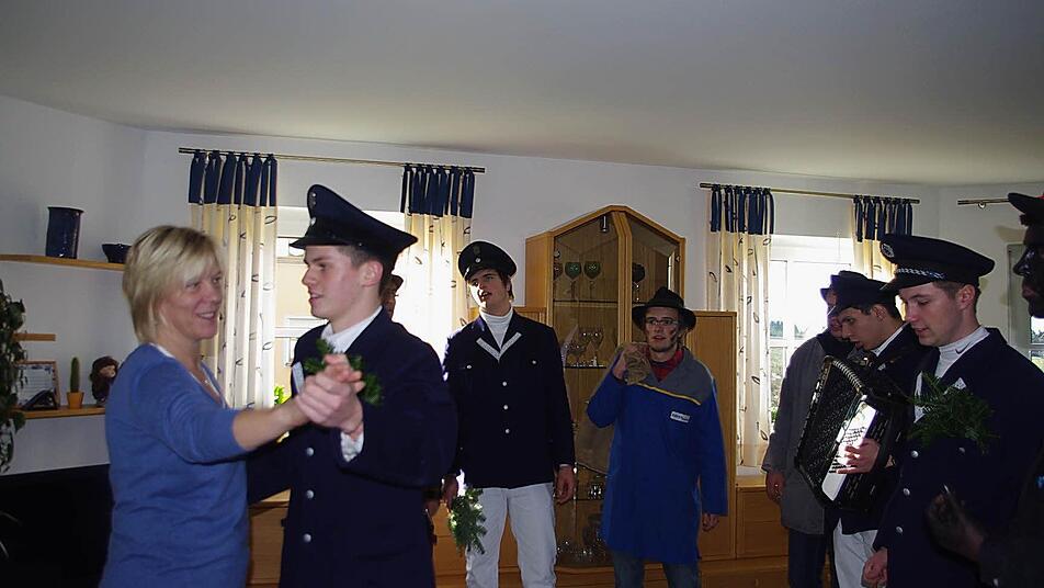 Begleitet von Tobias auf dem Akkordeon wird zwischen den einzelnen Häusern "Tief im Frankenwald" angestimmt. Obwohl sie keinesfalls zu überhören sind, öffnet sich nicht jede Haustür. Meist hängt in diesem Fall jedoch ein Geldkuvert an der Tür und eine kleine Aufmerksamkeit steht davor - beispielsweise Gebäck oder "ein guter Schluck". Doch die allermeisten Hausbewohner freuen sich auf den alljährlichen Besuch. Auf dem Tisch stehen schon kleine wie große Gläser bereit, Hochprozentiges und Nichtalkoholisches sowie Knabbereien. Da die Burschen von 6 Uhr morgens bis abends etwa 21 Uhr unterwegs sind, muss mit den Kräften und dem Trinkvermögen "gehaushaltet" werden.