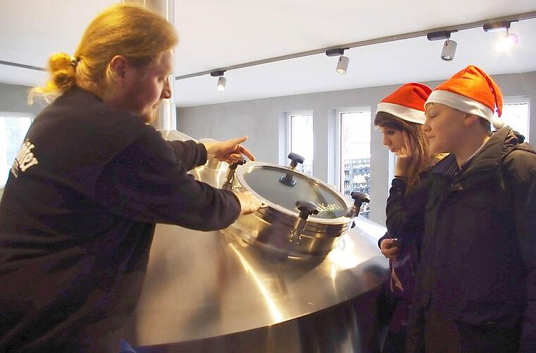 Ein intensiver Geruch von Bier liegt in der Luft. Beeindruckt stehen Billy und Ina vor einem großen Filter. "Das ist ein Läuterbottich. Hier werden die festen Bestandteile der Maische, der ,Treber‘, von den flüssigen, der ,Würze‘, getrennt", erklärt Brauer Robert Smith - aber nicht in Deutsch, sondern in Englisch, denn er stammt aus England, genauer aus der Wallenfelser Partnerstadt Bingham bei Nottingham.