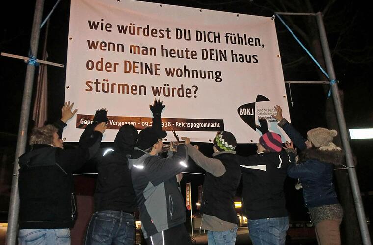 "Wir haben uns Aktionen für das ganze Jahr ausgedacht und wollten den 9. November mit einbeziehen", erklären die Beiden. Die auf den Plakaten aufgedruckten Fragen hätten sich bei der Tagung ergeben.