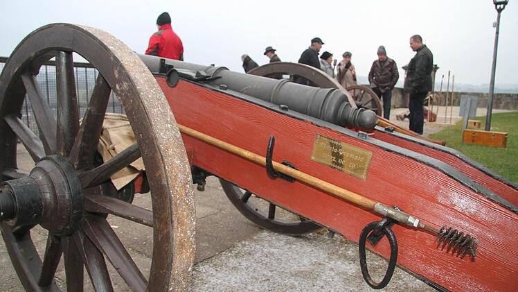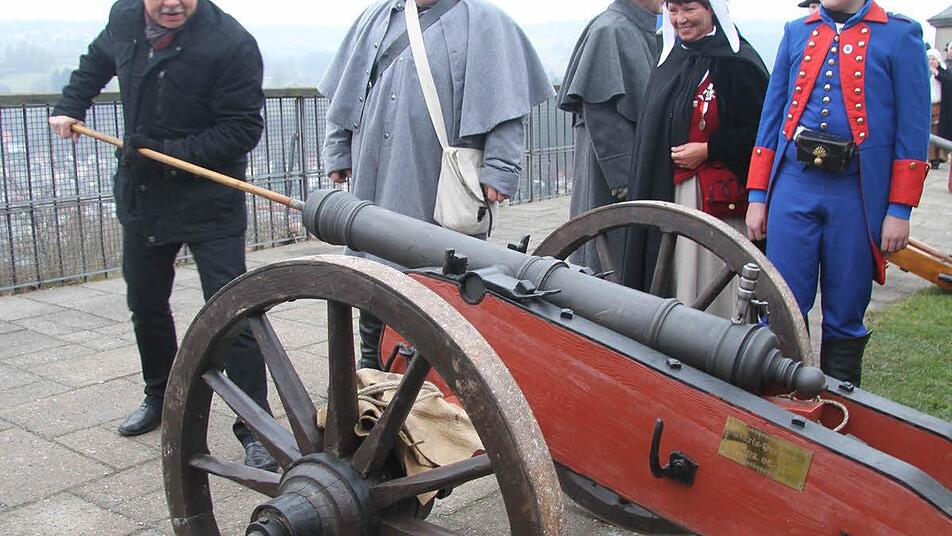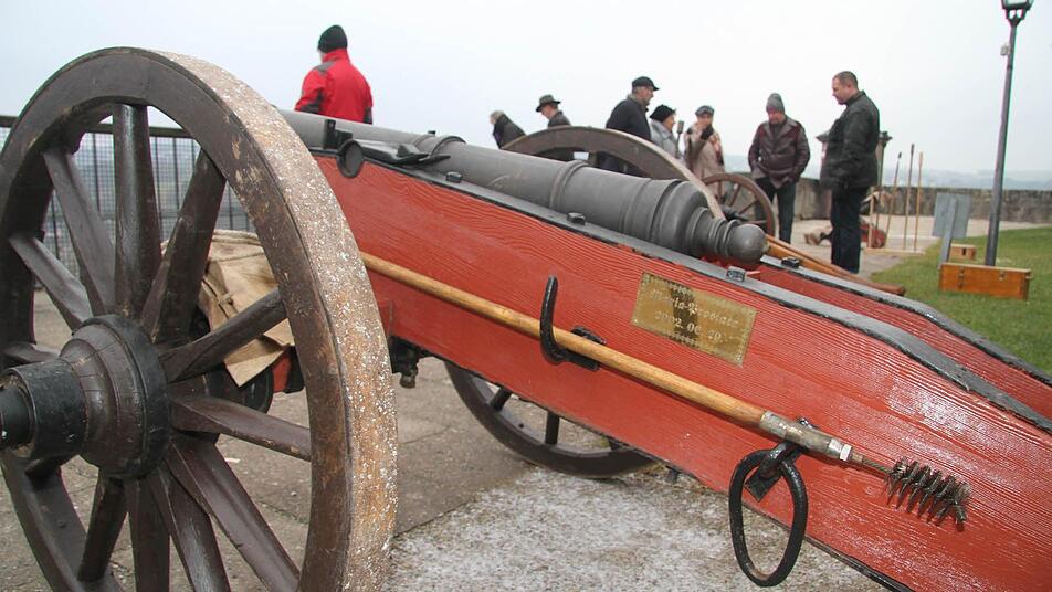 Mit viel Qualm und einem langen Feuerstrahl begrüßte die Kronacher Bürgerwehr das neue Jahr. Nicht nur einmal, sondern immer wieder. Die zahlreichen Zuschauer, die zu dem Spektakel auf die Festung gekommen waren, hielten sich die Ohren zu. Denn ob riesengroß oder klein, die alten Geschosse machten einen Megalärm.