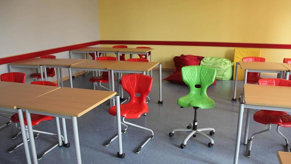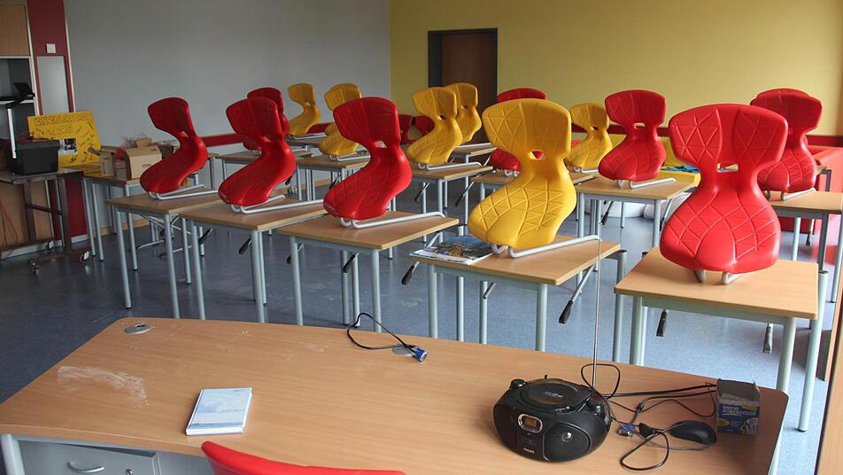 Ein paar Kabel auf den Lehrer-Schreibtischen liegen parat, damit die Computer angeschlossen werden können. Die gewohnten Overhead-Projektoren haben ausgedient und werden durch Beamer und Whiteboards ersetzt. Damit sich die Schüler der Ganztagsklassen wohlfühlen, bekommen sie keine naturholzfarbenen Stühle, sondern farbenfrohe Sitzgelegenheiten. Zusätzlich laden Polster und Sitzsäcke im hinteren Bereich des Klassenzimmers zum Chillen ein.