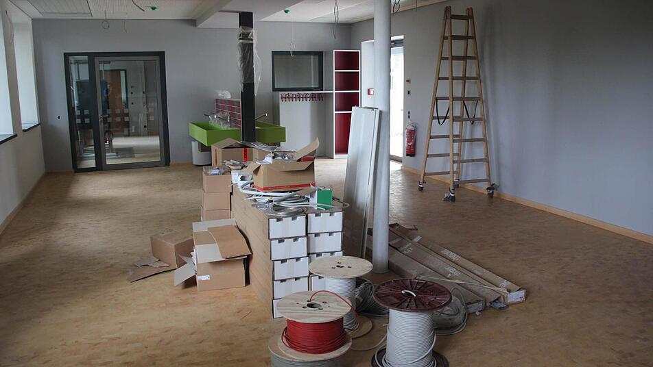 Kreiskämmerer Günther Daum, der die Baustelle zeigt, ist zuversichtlich, dass der Mittelbau zum Schuljahresbeginn startklar ist. Teilweise sind nur noch wenige Restarbeiten zu erledigen. Vor allem die Elektriker haben noch jede Menge Strippen zu ziehen und zu verklemmen.