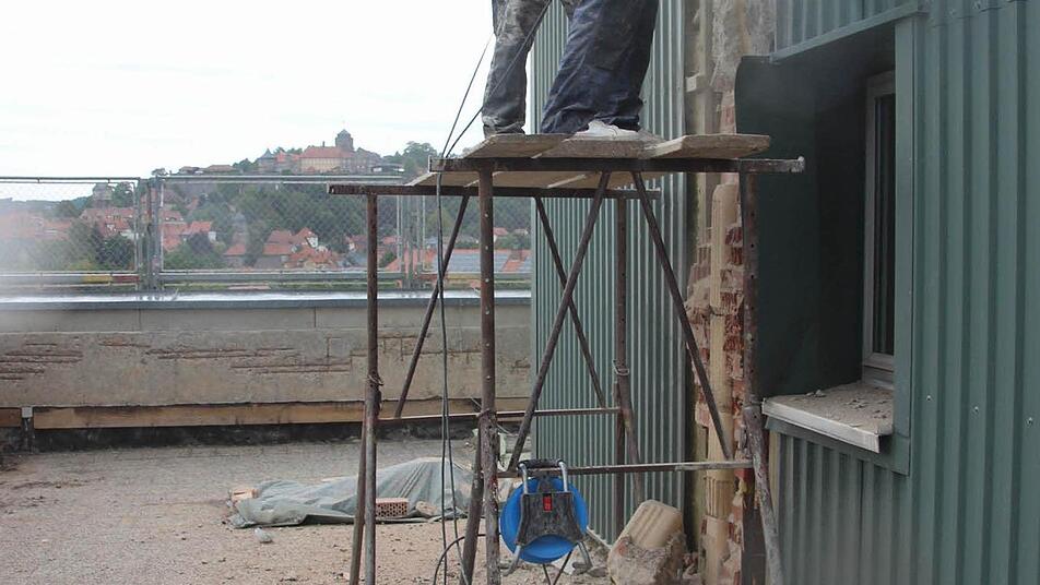 Die oberen Stockwerke im Hauptgebäude des Kaspar-Zeuß-Gymnasiums Kronach werden zurzeit entkernt. Der Mittelbau ist zum Schuljahresbeginn bezugsfertig. Das Kostenvolumen beträgt etwa 15 Millionen Euro.