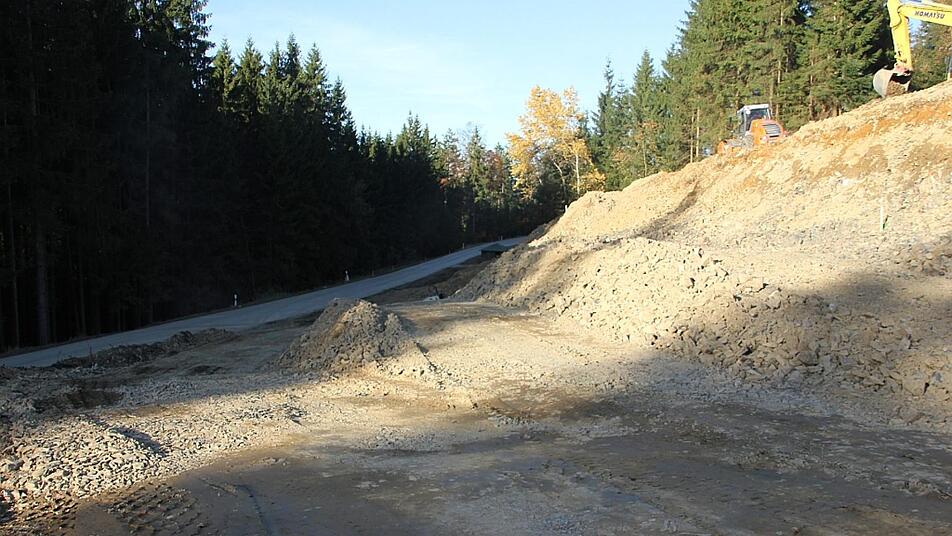 Insgesamt geht Dressel von 33 000 Kubikmetern Erdaushub aus, die getätigt werden müssen, um den Waldhang so abzutragen, dass der neue Straßenverkauf auf die geplante Höhe gebracht werden kann. Wie bereits berichtet, erfolgt bei diesem Vollausbau ein neuer rund sechs Meter breiter Trassenverlauf im Bereich vom Friedhof aus in Richtung Windheim im bisher bestehenden Waldhang bis zum Straßenwärterhäuschen. Von dort aus wird die Straße bis Ortseingang Windheim wie bisher verlaufen.