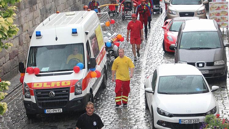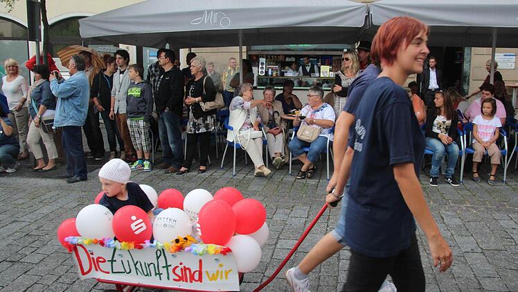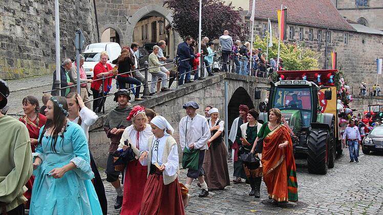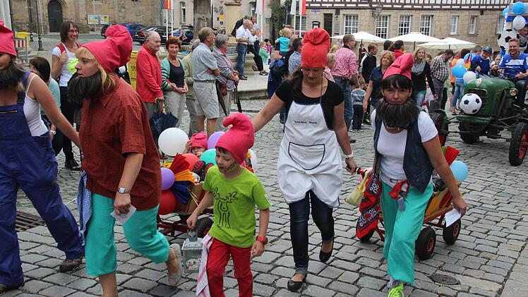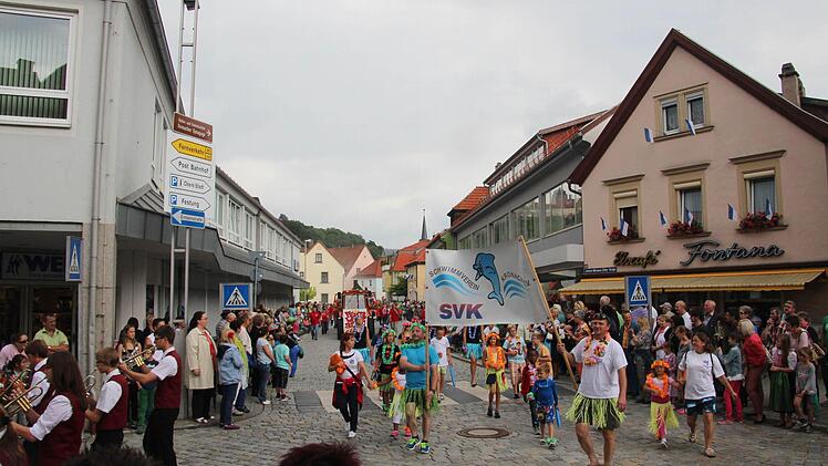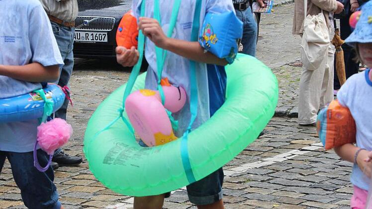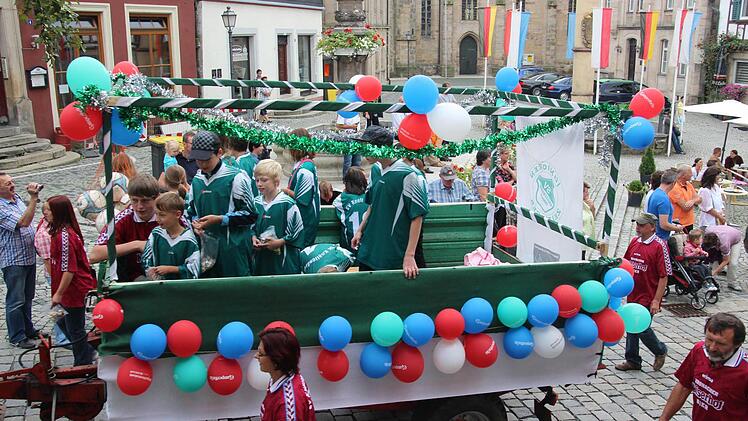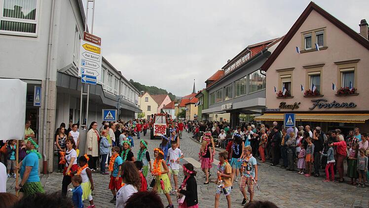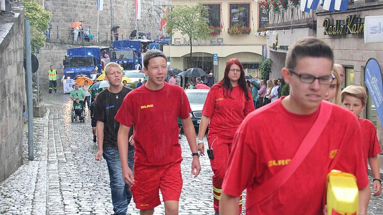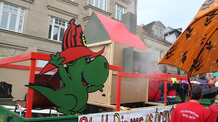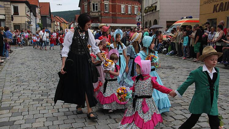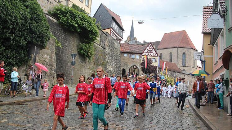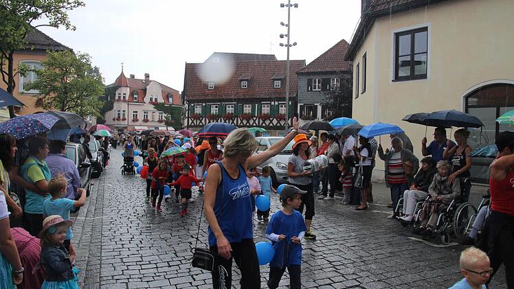 Ausgerechnet während des Kinderfestzugs ging am Dienstag in Kronach ein Regenschauer nieder, sodass fast sämtliche Teilnehmer und Zuschauer des Festzugs durchnässt wurden.