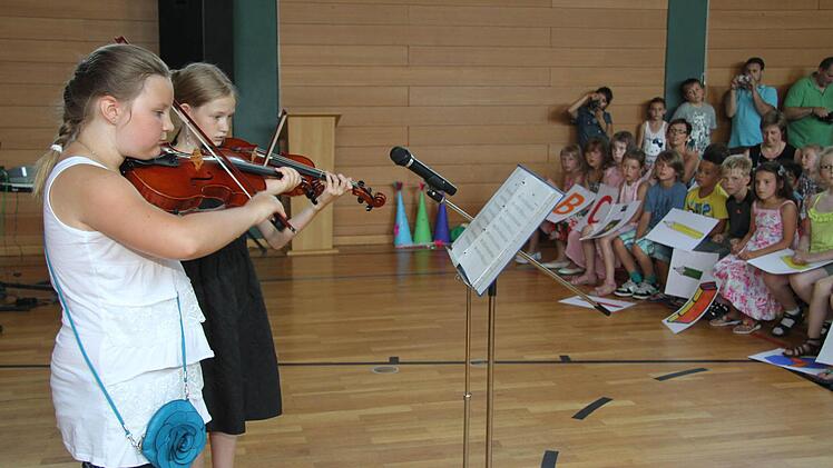 Der kommissarische Schulleiter, Hans-Gerhard Neuberg, verabschiedete sich gemeinsam mit Lehrerin Daniela Navjoks mit einer Torte, auf der die schönsten Eindrücke als Foto-Marzipandruck verewigt waren. Und statt einer Rede hatte Neuberg ein Lied zum Abschied geschrieben, das er als Schnadahüpferl darbot. Viel Mühe haben sich aber auch die Kinder gemacht.