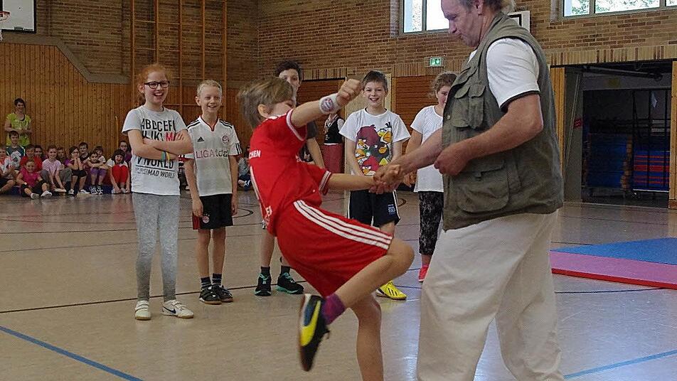 Selbstsicherheit durch Erfahren der eigenen Stärke - war einer der Hauptpunkte des sechswöchigen Selbstverteidigungsprogramms "Nicht mit mir", das am letzten Schultag vor den Ferien seinen Abschluss fand.