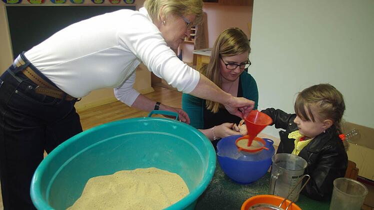 Eine solche Sanduhr konnten die Kinder in einem Workshop in der seit Januar dieses Jahres ins Pfarrheim ausgelagerten Kita nachbauen. Zwei gleich große Flaschen wurden dabei mit einem dünnen Röhrchen miteinander verbunden. Eine der Flaschen wurde mit Sand gefüllt, beim Aufstellen der Uhr rieselte der Sand durch das Röhrchen in den anderen Behälter.
