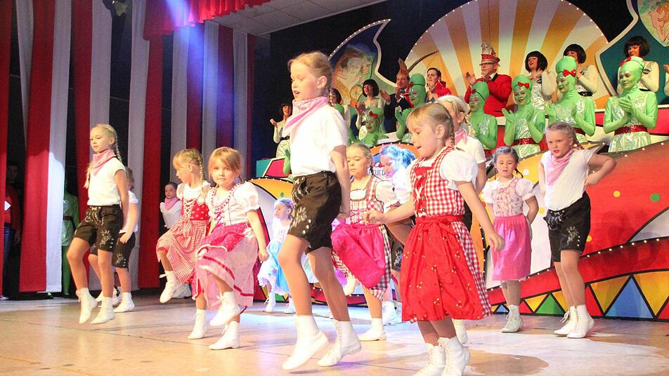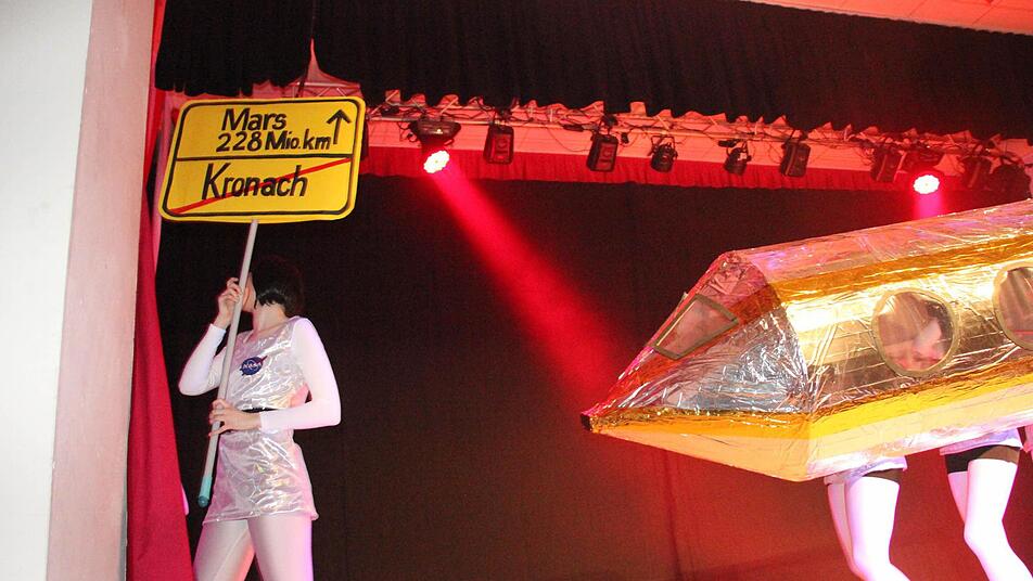 Die kleine und große Garde war gleich zweimal dran: Erst mit den üblichen Gardetänzen und dann die kleine Garde mit einer rustikalen Dirndl-und-Lederhosen-Nummer, die große Garde mit einem farbenprächtigen Showtanz, der einen Besuch auf dem Mars zeigte.