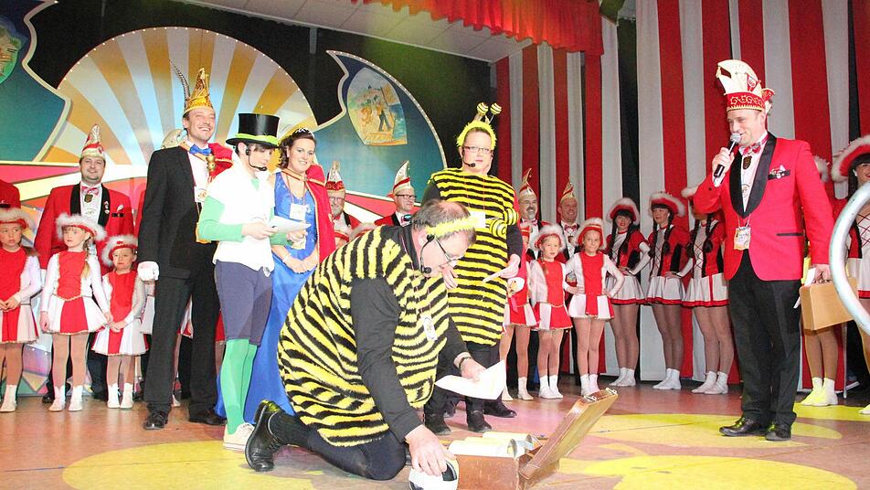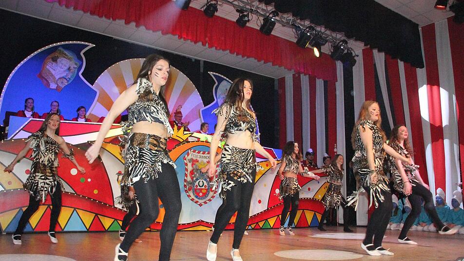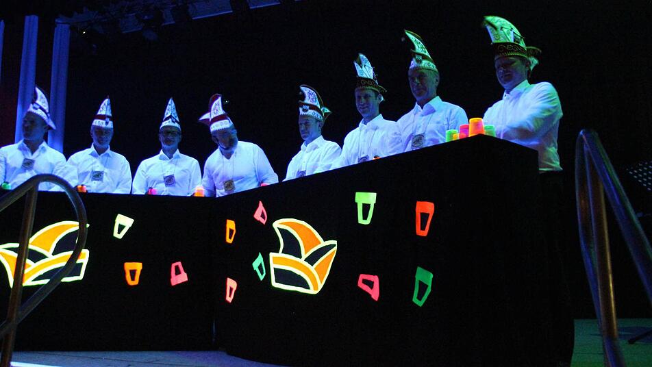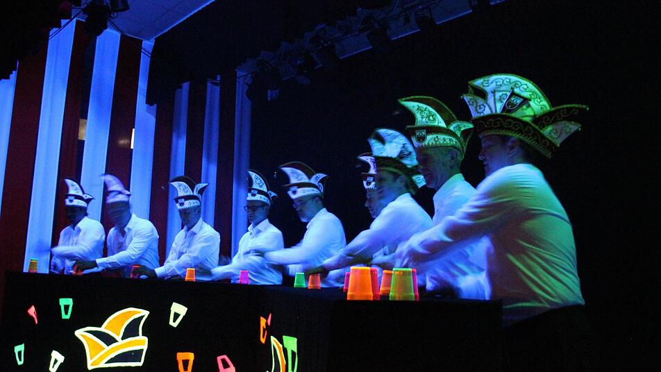 Maria Kaiser bot als Solo-Tanzmariechen wieder einen atemberaubenden Tanz als Reise durch Amerika. Auch die Schreihälse der Pfarrei St. Johannes stimmten in das Biene-Maja-Motto ein und sangen ein Reise-Lied. Ein bisschen singfaul, dafür aber optisch im Schwarzlicht eine Augenweide war der Elferrat mit seinem Cup-Song, bei dem er leuchtende Becher im Takt weiterreichte. Für die musikalische Umrahmung sorgte wieder das Jugendorchester.