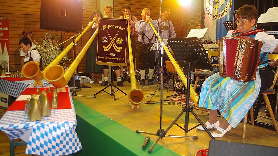Kuhglocken und Dudelsäcke Die Alphorn- und Instrumentalgruppe "Alpenecho" wurde 1993 in Hönbach gegründet. Interessierte Musiker aus Thüringen und Bayern fanden sich zusammen, um für die Region nicht typische, aber interessante Instrumente zu spielen. Die ersten Instrumente waren die Alphörner und so entschloss man sich, diese Instrumente im Vereinsnamen zu verewigen. Zum Klingen in Reichenbach kamen beispielsweise Kuhglocken, Dudelsäcke, ein Hupaphon, eine Teufelsgeige sowie eine Panflöte. Das Publikum war begeistert - genauso wie vom Auftritt der "Summbarcher Waschweiber" Hulda und Frieda (Silvia Otto und Doris Motschmann), ebenfalls Mitglieder des "Alpenechos".