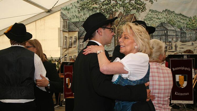 Viele Zuschauer säumten am Sonntagnachmittag im Glasmacherdorf die Straßen, um sich den traditionellen Kirchweihumzug nicht entgehen zu lassen. Sieben Paare und vier Kellner zogen durch Kleintettau, um anschließend im Festzelt den Plantanz mit den drei Pflichttänzen Walzer, Rheinländer und Polka zu eröffnen. Musikalisch gestaltet wurde der Nachmittag von der Rennsteigkapelle Kleintettau.