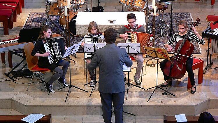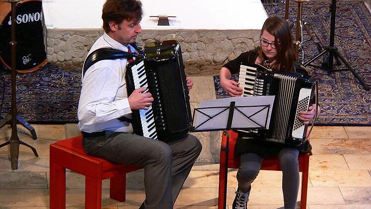Auch die Nordhalbener Talente bewiesen bei ihrem "Heimspiel" Konzentration und Können. Alessa Wolf (Akkordeon) hatte gleich zwei Auftritte, im Quartett mit Mozarts "Ave Verum" und im Duett mit ihrem Lehrer Harald Kotschenreuther beim "Boogie in C" (Erwin Hug).