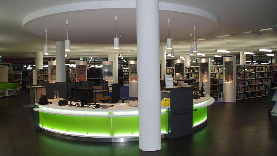 Eine knallgrüne, beleuchtete Empfangstheke, darunter ein dunkler Fußboden, darüber eine strahlend weiße Decke. Schon die ersten Schritte in die Kreisbibliothek wecken den Eindruck, ein nobles, aber auch modernes Hotel zu betreten. Dieses Ambiente ist kein Zufall. In der rund 16-monatigen Umbauphase haben die Verantwortlichen genau darauf hingearbeitet.