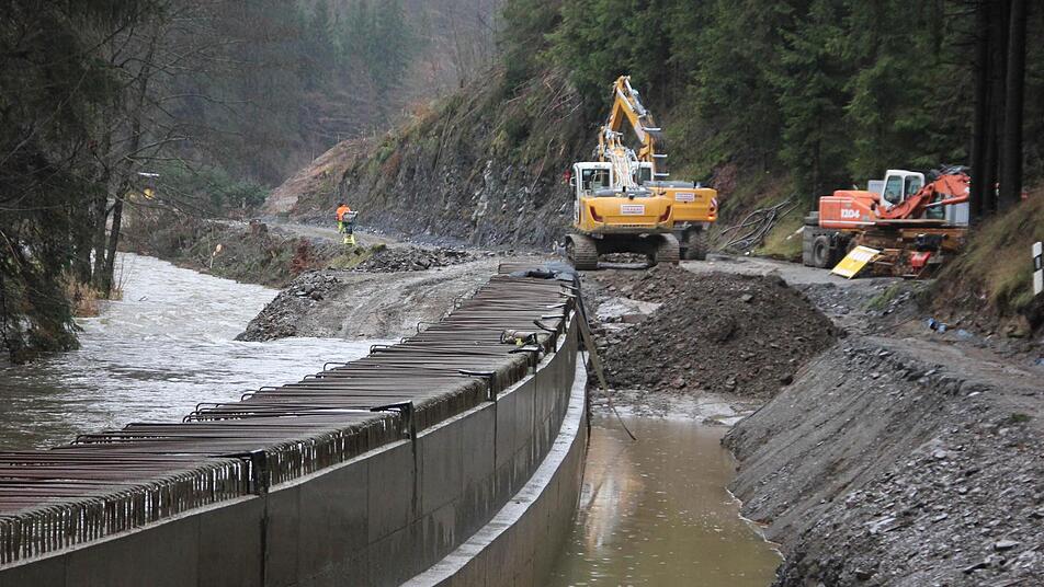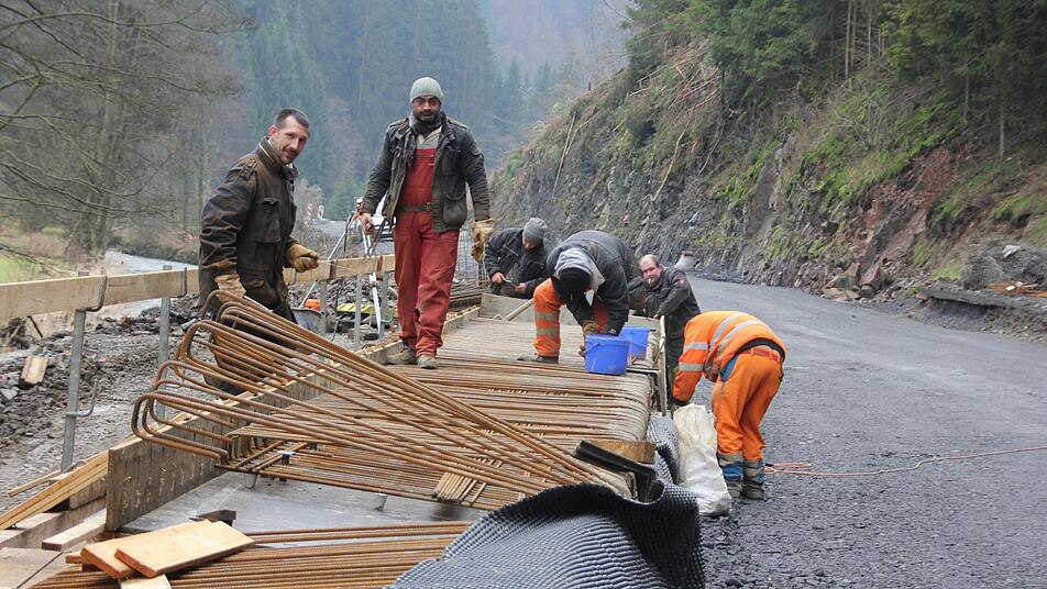 Also musste man kurzfristig im Landratsamt umplanen, die Bauarbeiter auf den schwierigeren und aufwendigeren Abschnitt zwischen Brücke und Gifting schicken. Die Felsnase war zu durchbrechen und an der ehemaligen Kugelmühle musste eine lange Stützmauer errichtet werden, weil man nicht weiter in Richtung Felshang vordringen konnte.