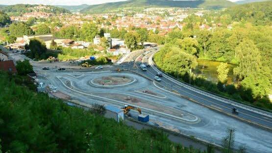 Ab der kommenden Woche soll das Gesicht des Kreisels weiter herausgearbeitet werden. Dann ist der Beginn der Asphaltierung vorgesehen. An einem Stück lassen sich diese Arbeiten aber nicht durchziehen, denn dafür steht die Fahrspur in Richtung Süden im Weg. Die wird ja noch immer von den Verkehrsteilnehmern genutzt. Um in diesem Bereich arbeiten zu können, muss der Verkehr später durch den Kreisel geführt werden.