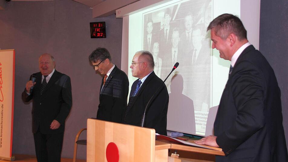 Drei Männer, die den Verein vor 25 Jahren mit aus der Taufe gehoben haben, blickten zurück: Werner Krüger, Dirk Hubbert und Wolfgang Kleinert. Werner Krüger erinnerte, dass Kronach Creativ bereits im März 1990 habe gegründet werden sollen. Durch die turbulente Zeit der Grenzöffnung sei dies auf das Jahresende verschoben worden. Krüger lobte die Bescheidenheit der Oberfranken. "Deshalb bin ich schon 41 Jahre hier." Dirk Hubbert bedauerte, die Kronacher hätten zu viel Understatement, aber hier könne man etwas erreichen. Was aus Kronach Creativ geworden sei, nötige ihm Respekt ab. Wolfgang Kleinert erinnerte an "die alte Zeit" im Landratsamt Kronach und daran, dass bei der Abstimmung der Name Kronach Creativ nur eine Stimme Mehrheit erhalten habe.