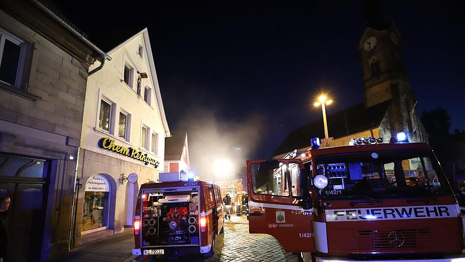 Schon kurze Zeit nachdem die Feuerwehr gegen kurz nach 22 Uhr gerufen wurde, war der Brand im Erdgeschoss der Reinigung gelöscht. "Maximal zehn Minuten nach Eintreffen hatten zwei Trupps mit schwerem Atemschutz das Feuer lokalisiert", informierte Stefan Wicklein von der Feuerwehr Stadt Kronach. Anschließend wurde das Gebäude druckbelüftet, um den Rauch aus dem Gebäude zu bekommen. "Denn die Kunststoffe produzieren unwahrscheinlich viel Rauch", erklärte Wicklein.