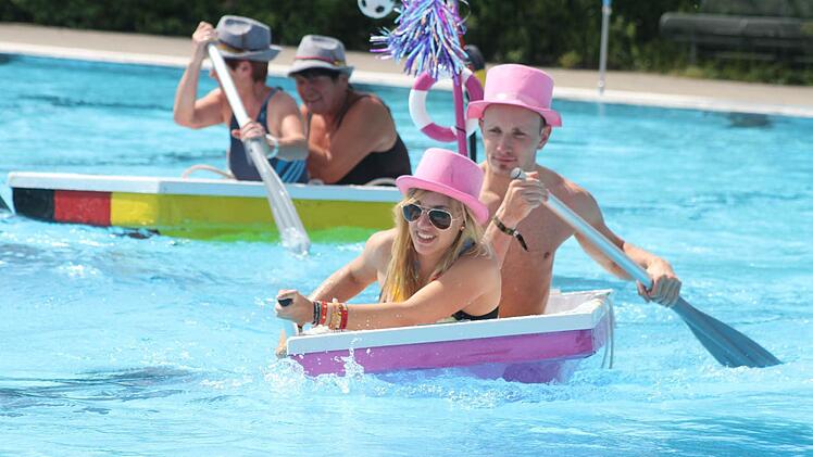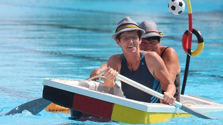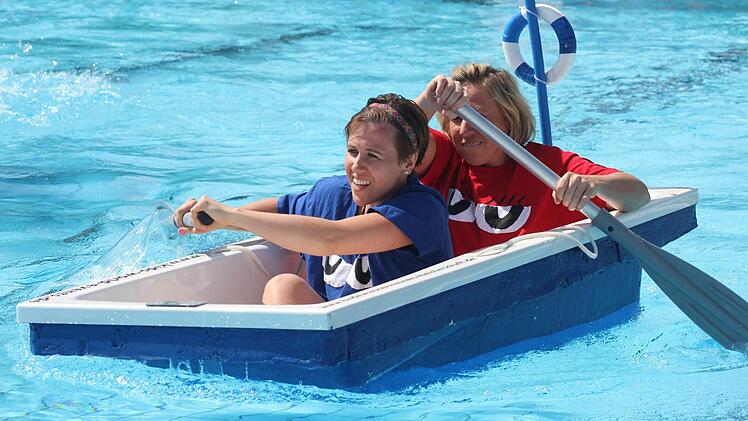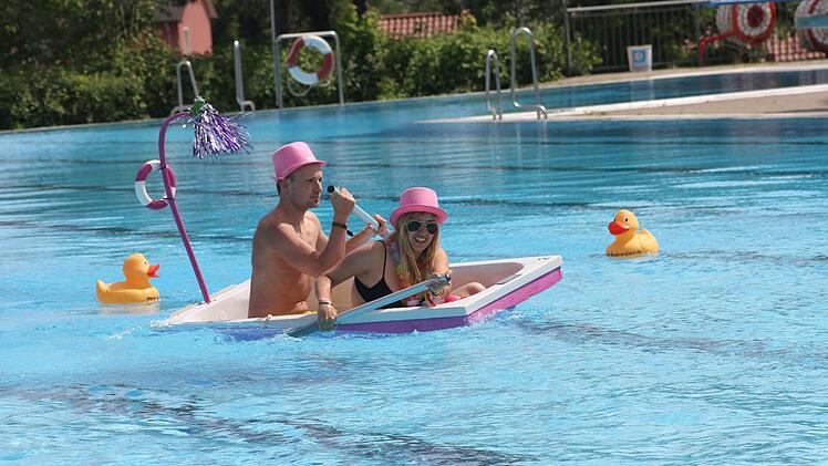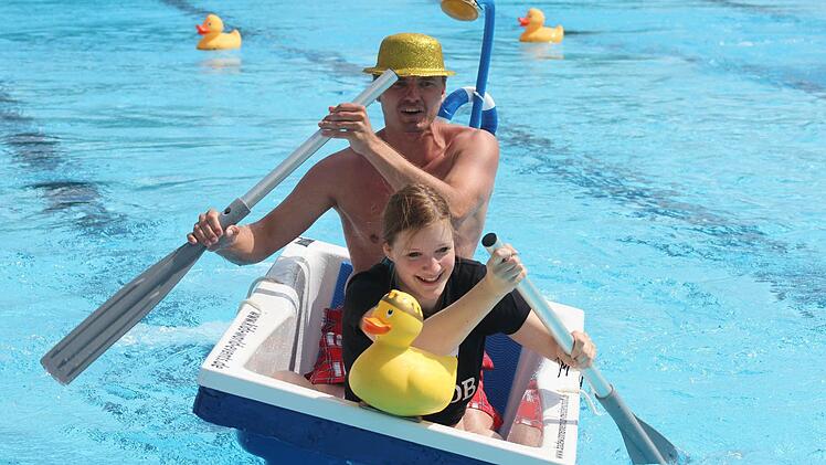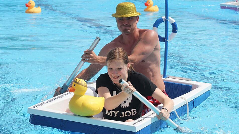 Das ist doch einfach ein Spaß. So was ist richtig was für mich", lachte Nicole Hühnlein und war gut drauf. Und offenbar brachte ihr die positive Einstellung Glück. Denn das Team "Flauschiges Quietsche-Entchen" kam auf Platz 1 und stach damit auch die Nichtschwimmer alias Daniel Schüler und Katharina Flesch aus.