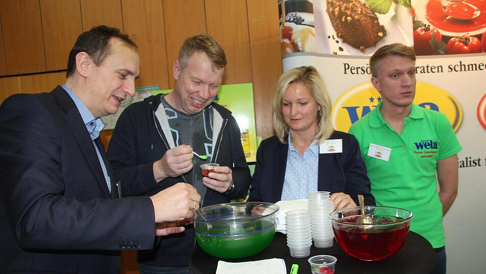 Unter dem Motto "Das Auge isst mit!" kamen Azubis und der Betriebsleiter von Wela, Wolfgang Vetter, mit den Heranwachsenden ins Gespräch. Bei ihnen konnte man Götterspeise probieren. Dabei wurde deutlich, dass man sich ausschließlich von der Farbe leiten ließ, wenn es um die Feststellung des Geschmacks ging. In lockerer Atmosphäre folgten schließlich Gespräche über die Ausbildungsmöglichkeiten bei Wela.