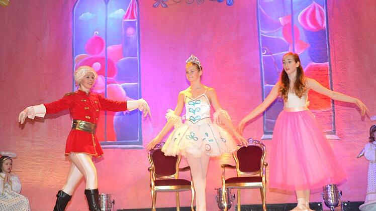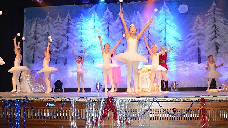 Die Darsteller und Tänzer versetzten die Zuschauer in eine fantastische Märchenwelt mit traumhaft farbenfroher Kulisse und Kostümierung, dazu großartige Choreografie mit verzaubernden Formationen. Weit über 60 Ballerinas im Alter von fünf bis 27 Jahren sowie einige Eltern die sich als Weihnachtsgäste in die Darbietung mischten, prägten der Inszenierung den Stempel auf.