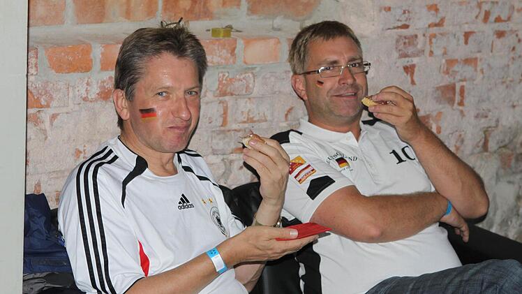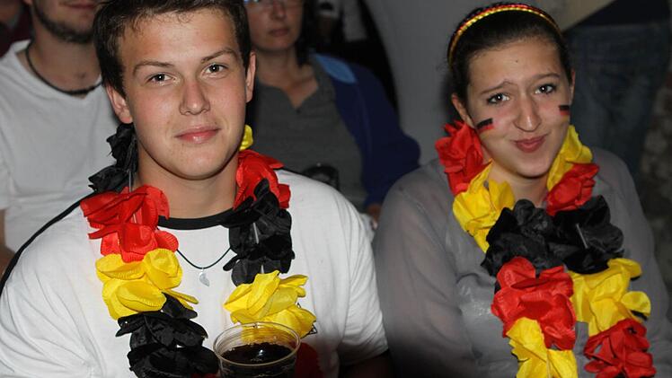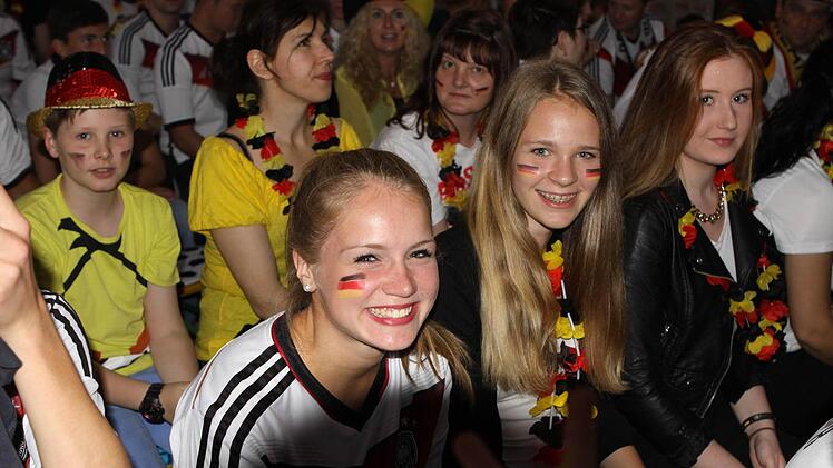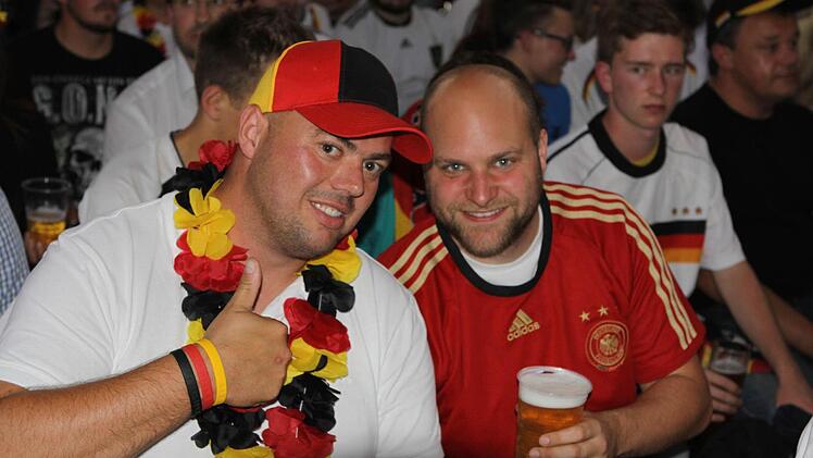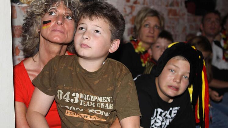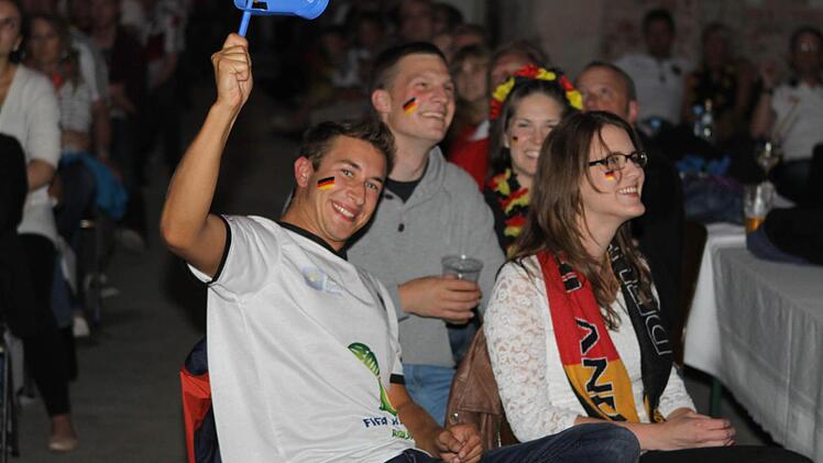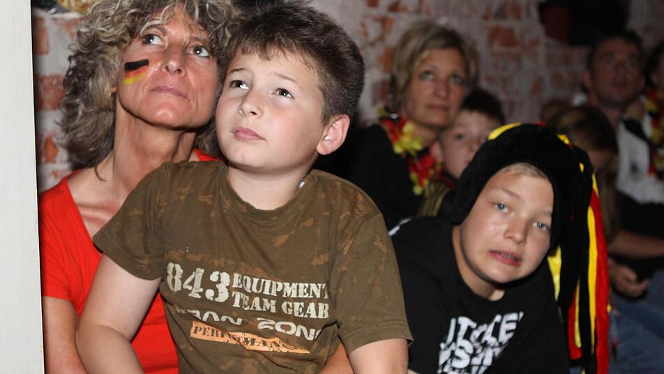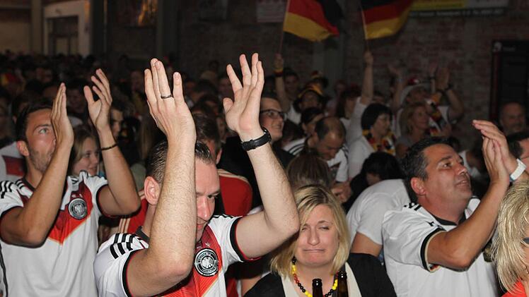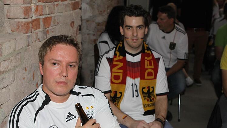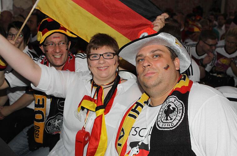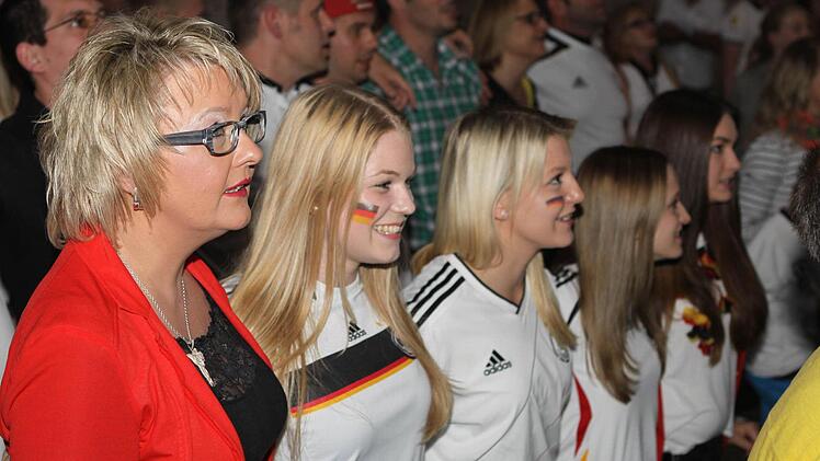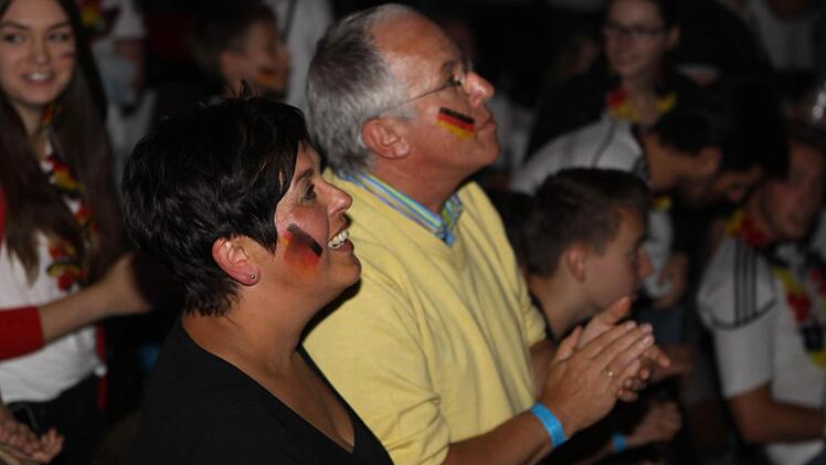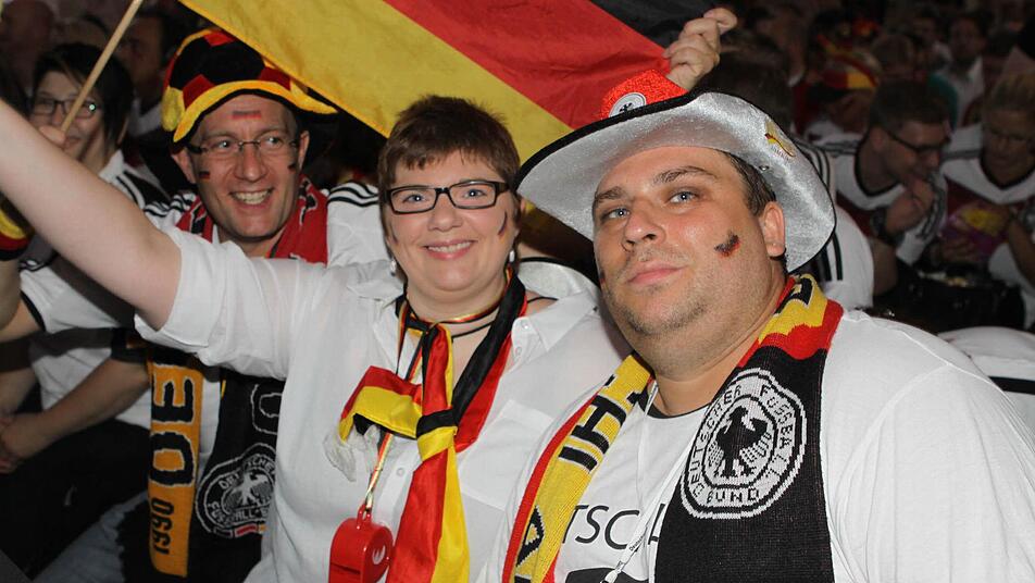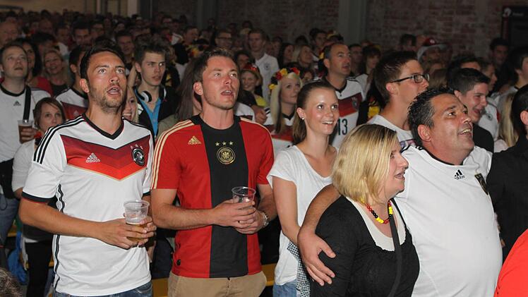 Die Halle ist bereits lange Zeit vor dem Anpfiff proppenvoll. Die Fans, viele davon in Deutschland-Trikots und mit angemalten Gesichtern, feuern die Löw-Truppe an wie noch nie. Wenn's mal ein bisschen ruhiger in der Halle wird, greift Phillip Mahr zum Mikrofon und fordert den Sprechchor "Steh auf, wenn ...". Die Fans tun das bereitwillig - auch bei der Nationalhymne, die sie mit voller Kehle mitsingen. Am Ende des Deutschlandlieds jubeln sie wie nach einem Sieg. Aber bis dahin ist es noch ein langer Weg.