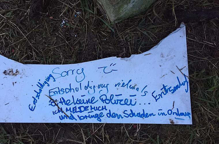 "Die Schranke ist aus dem Fundament gerissen worden", beschreibt Porzelt. Das sei keine Leichtigkeit. "An dem Auto muss die Aktion bestimmt einen großen Schaden hinterlassen haben." Das Bemerkenswerte: Der unbekannte Täter hinterließ ein Entschuldigungsschreiben.