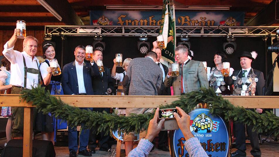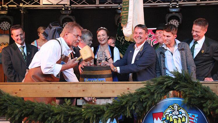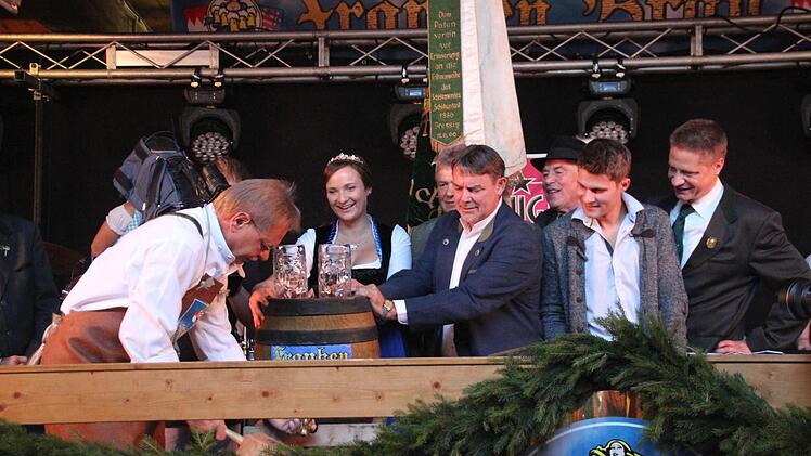 Er brauchte nur zwei Schläge und es spritzte nicht. Der Hahn saß fest im Fass. Routiniert nahm Bürgermeister Wolfgang Beiergrößlein (FW) den Bieranstich zum 426. Kronacher Freischießen vor. Die bayerische Bierkönigin Tina-Christin Rüger assistierte ihm dabei. Der Bürgermeister freute sich, dass neben Frankenwäldern auch viele Gäste gekommen waren, um gemeinsam zu feiern. Die Turbulenzen mit dem Anliegen des Anliegers ansprechend, meinte das Stadtoberhaupt, dass man einen Kompromiss finden müsse, der das Freischießen in Kronach für die nächsten Jahrzehnte sichere.