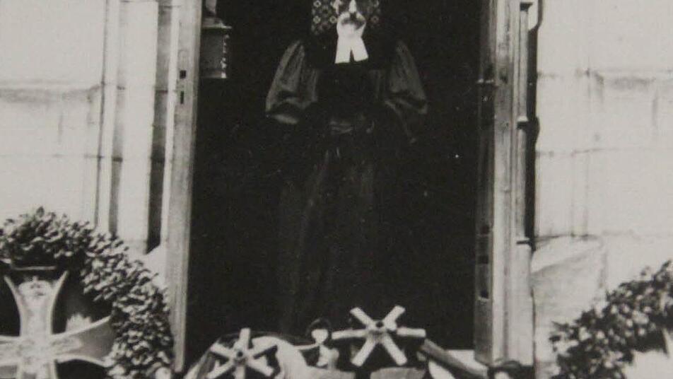Während für die Nage lungsaktion Nägel aus Eisen verwendet wurden, holte der Staat im Krieg anderswo Metall, um Granaten produzieren zu können. Auch Kirchenglocken, die noch kein geschichtsträchtiges Alter erreicht hatten, wurden zerschlagen und zu Munition verarbeitet. Ein Bild im Stadtarchiv zeigt Pfarrer Adam Strunz vor zertrümmerten Glocken.