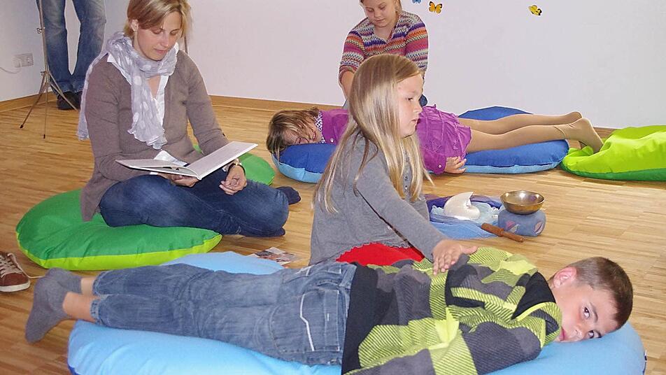 können, um deren Aufnahmefähigkeit zu verbessern. Dies bestätigte auch Konrektorin Sabine Freifrau Bock von Wülfingen, die mit den Schülern der Klassen 1 a und 4 a eine kurze Einführung in das Snoezelen gab. Dabei legten sich die Jungen und Mädchen auf ihre Doppel-Moppel. Sie hörten der Geschichte von den Muscheln im Sand zu und wurden beispielsweise animiert, durch gegenseitige Massagen die Wellen im Meer nachzuahmen.
