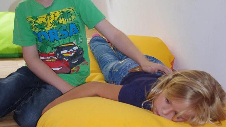 Emma und Benedikt machen es sich gemütlich. Die Siebenjährigen legen sich auf ein großes, orange-gelbes Liegekissen, einen so genannten Doppel-Moppel. Fast kommen sich die beiden Erstklässler ein wenig vor wie in einer anderen Welt.