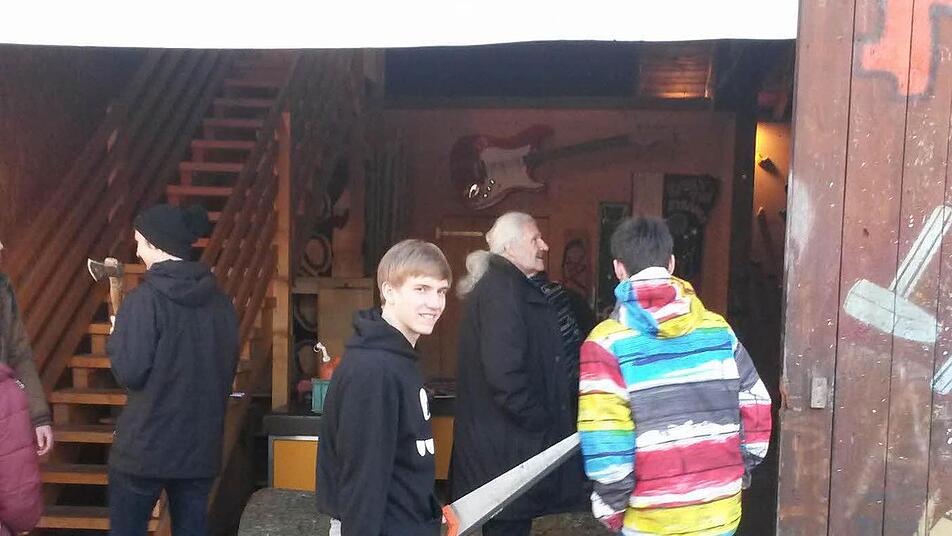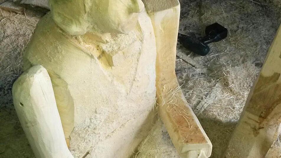 Deshalb schnitt Bildhauer und Künstler Walter Busch das Monstrum in der Struwwelscheune in Einzelteile. Und in kleinen Gruppen konnten die Schüler den Stamm dann so behauen, dass - wenn sie wieder zusammengefügt werden - eine ganze Kaspar-Zeuß-Figur herauskommt.
