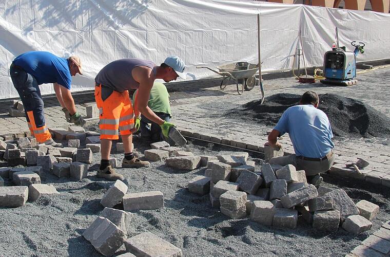 "Wir werden bei der Weka ein bisschen reinrücken, damit die Fußgänger den fertigen Bereich schon queren können", verspricht Maaß für die kommenden Tage.